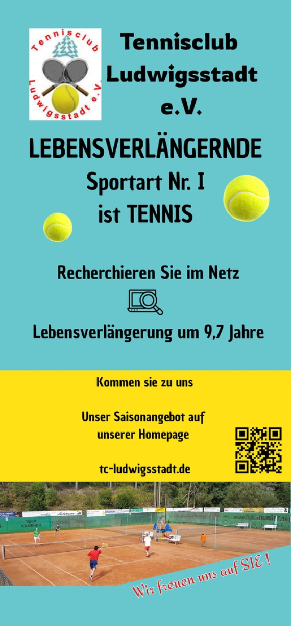 Anmeldung mit Angabe des Alters für die Zusammenstellung der Trainingsgruppen. Termin für den Einführungskurs auf der Tennisanlage in Ludwigsstadt wird per Mail an die Teilnehmer gesendet. Gruppentraining mit je 4 Personen / Trainingseinheit: 45 min. Was benötigen Sie: Sportschuhe ohne Profil; Tennisschläger und Bälle werden gestellt.