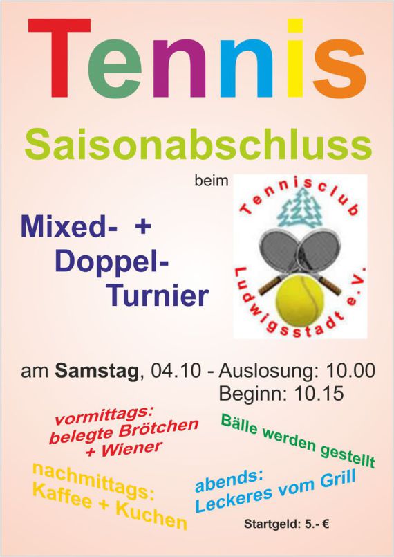 Tag der offenen Tür mit Sommerfest am Samstag 26.Juli 2025 war ein voller Erfolg. Viele Besucher und Tennisinteressierte von jung bis alt, viel Spaß beim Tennis, Essen, Trinken und gemütlichen Beisammensein. Impressionen unter: Bildergalerie - Tag der offenen Tür 2025. Danke an allen Helferinnen und Helfer für diesen schönen Tag auf der Tennisanlage in Ludwigsstadt